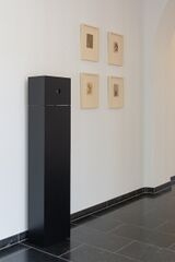 The Black Room | houten kijkdoos op sokkel, intern verlicht | 138.7 x 30 x 20.2 cm | Installatieview – FEAR, PC Sint-Amandus, Beernem, België, 2023