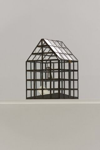 De Sleutel | assemblage in mini-kas | 20 x 20.5 x 31 cm | Installatieview – De Sokkel, Biënnale van België, S.M.A.K., Gent, 2022