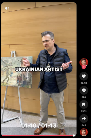 Babenko verschijnt in Instagram filmpje van influencer Max Klymenko naar aanleiding van de tentoonstelling in HQ NAVO, 2024, Brussel
