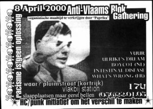 | Nederlands | Ulrikes Dream, Intestinal Disease, Boycot, e.a. in de Pluimstraat in Kortrijk op 08-04-2000 |