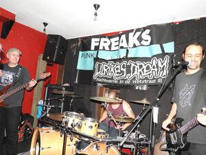 “Het Depot” organized a big festival to celebrate 40 years of punk (with The Damned, Hard Skin, Discharge…). There were some punk-related activities the night before in several pubs in Leuven. This was one of them. Ulrikes Dream was asked to play the Rock Café. There was a contest to elect a second band. The contest was won by local punkrockers Freaks and Nerds. (Engels)